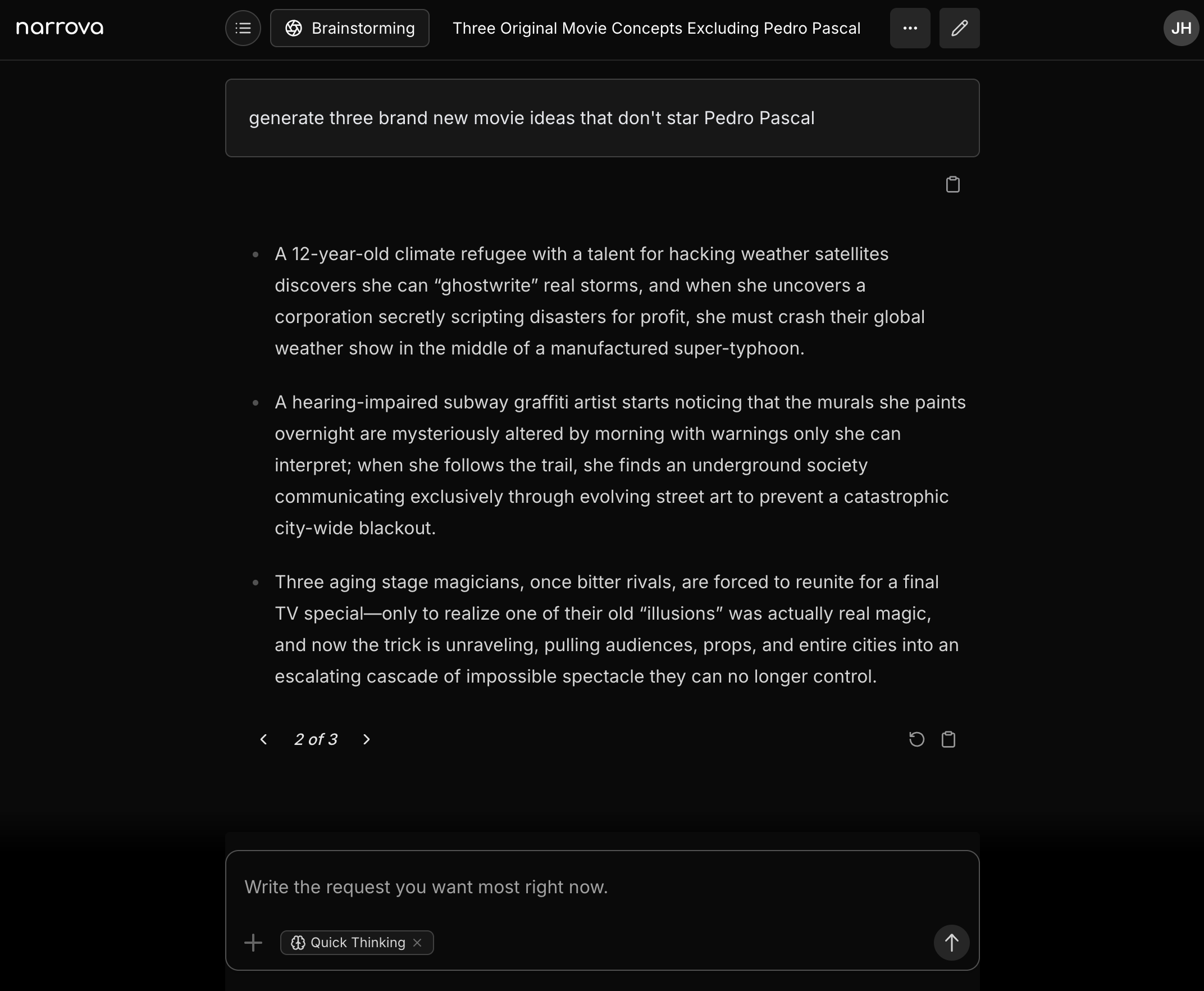 I’ve been trying out some brainstorming on Narrova. Having some fun.