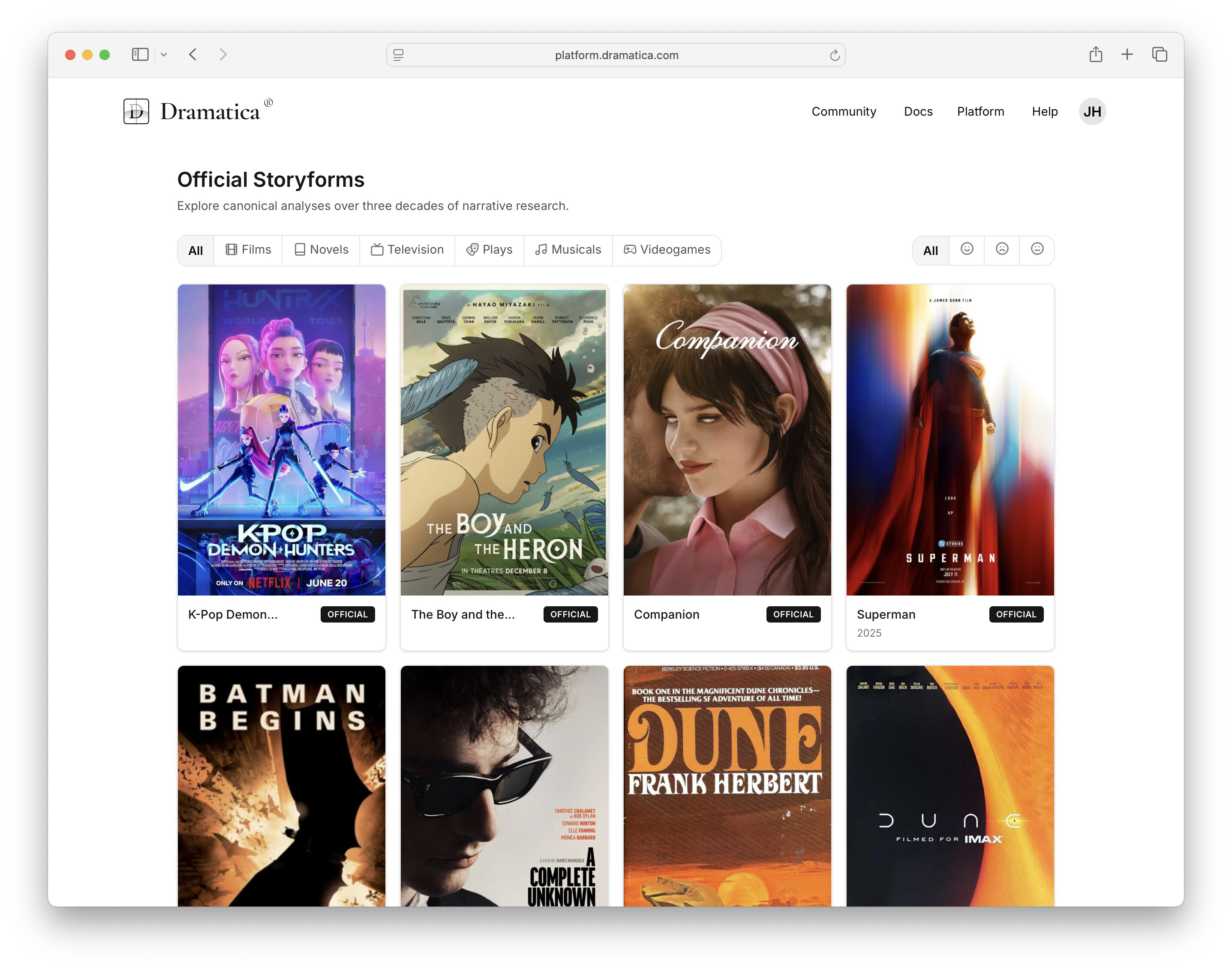 Enjoy access to over 600+ professionally curated Storyforms, distilled from 30 years of narrative exploration—all available exclusively on the Dramatica Narrative Platform. Have fun exploring!