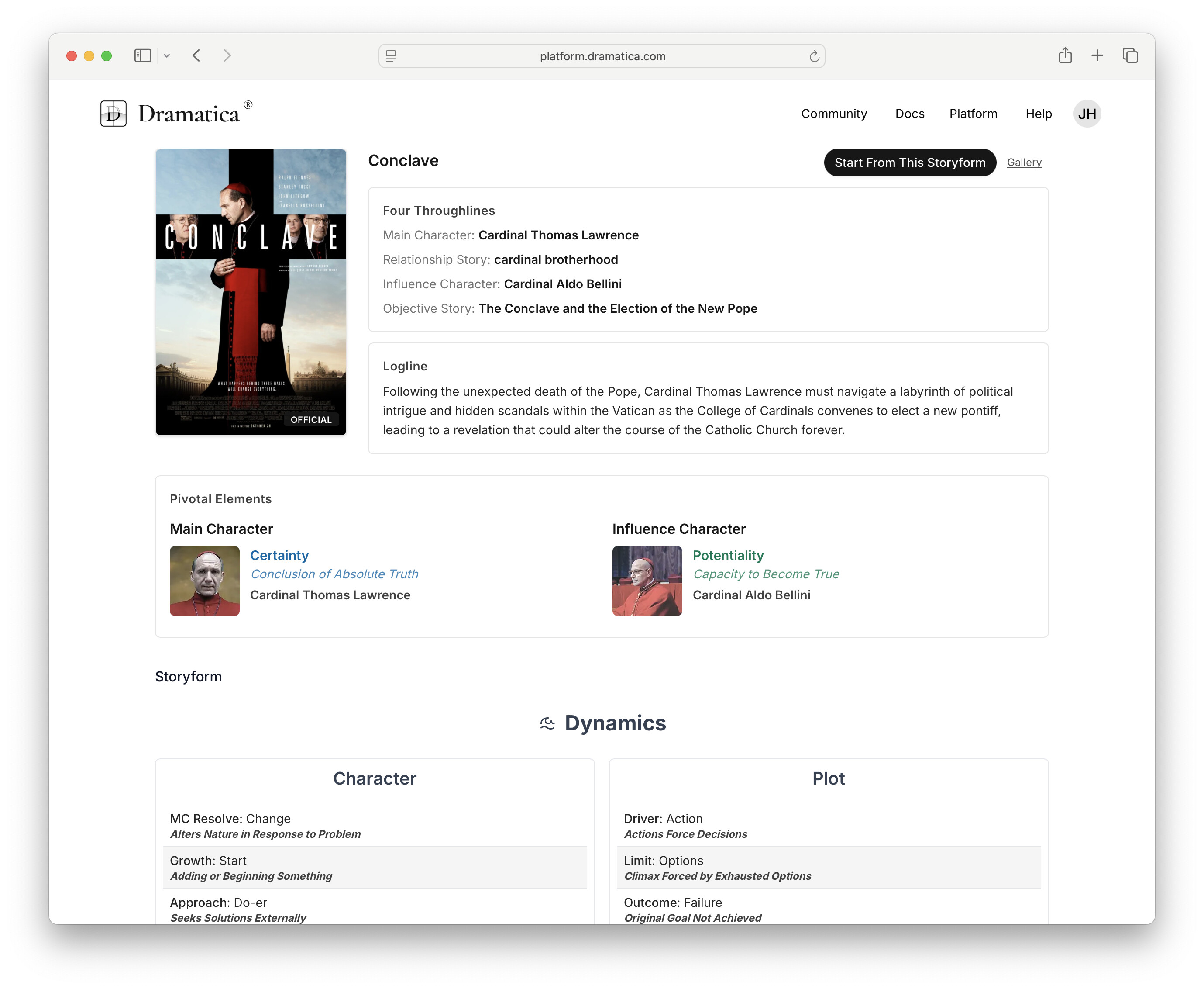 One question Jim, how do you get to the Storyforms via the navigation? You can search for a storyform using the mangifying-glass search option / ctrl+k, and I figured out the URL was: https://platform.dramatica.com/storyforms. But not sure how to navigate there?